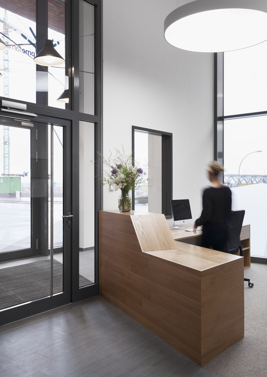 Das repräsentative Headquater des PME Familienservice ist im nautische Stil gestaltet und verbindet so die Umgebung der neuen Hafen City in Hamburg mit den Innenräumen. Mit einer Fläche von nahezu 1500 Quadratmetern zeigt dieser Standort, wie die Corporate Identity eines Unternehmens über unterschiedliche Geschäftsbereiche hinweg konsistent umgesetzt werden kann.